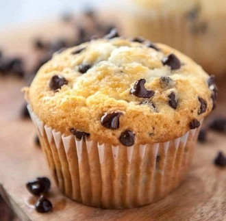 Moist chocolate muffin with mashed bananas for a naturally sweet twist.